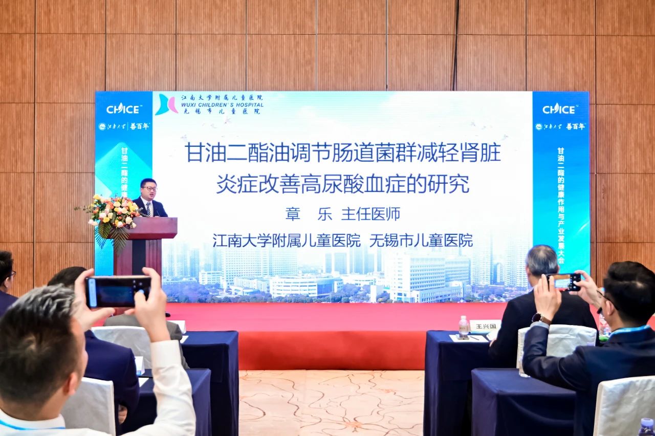 江南大学附属儿童医院主任医师章乐分享了《甘油二酯油降尿酸机制的研究》主题报告。